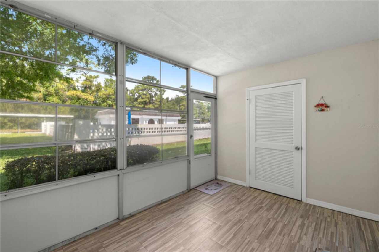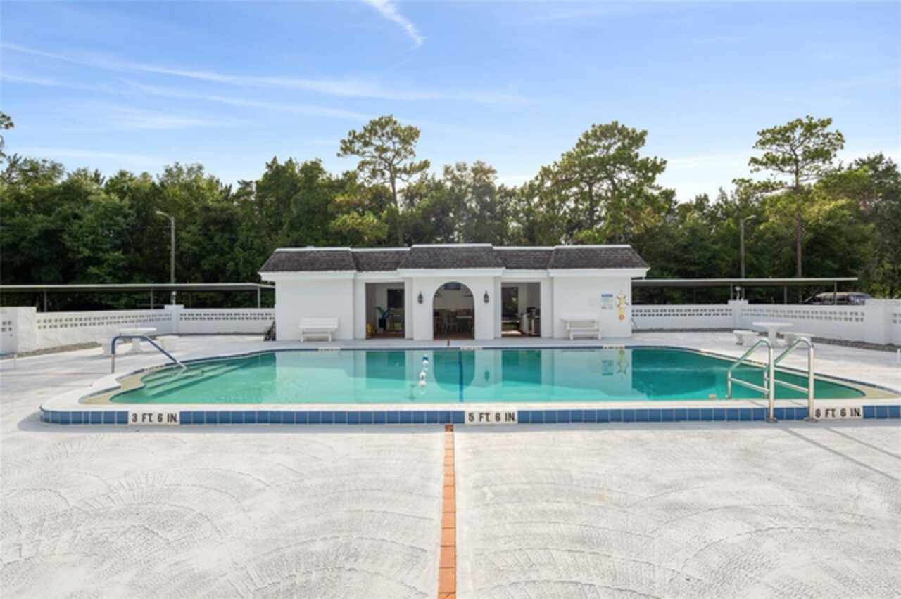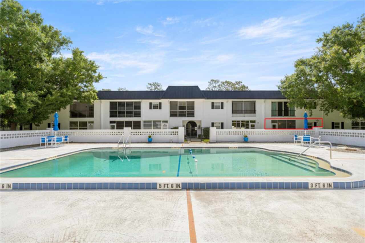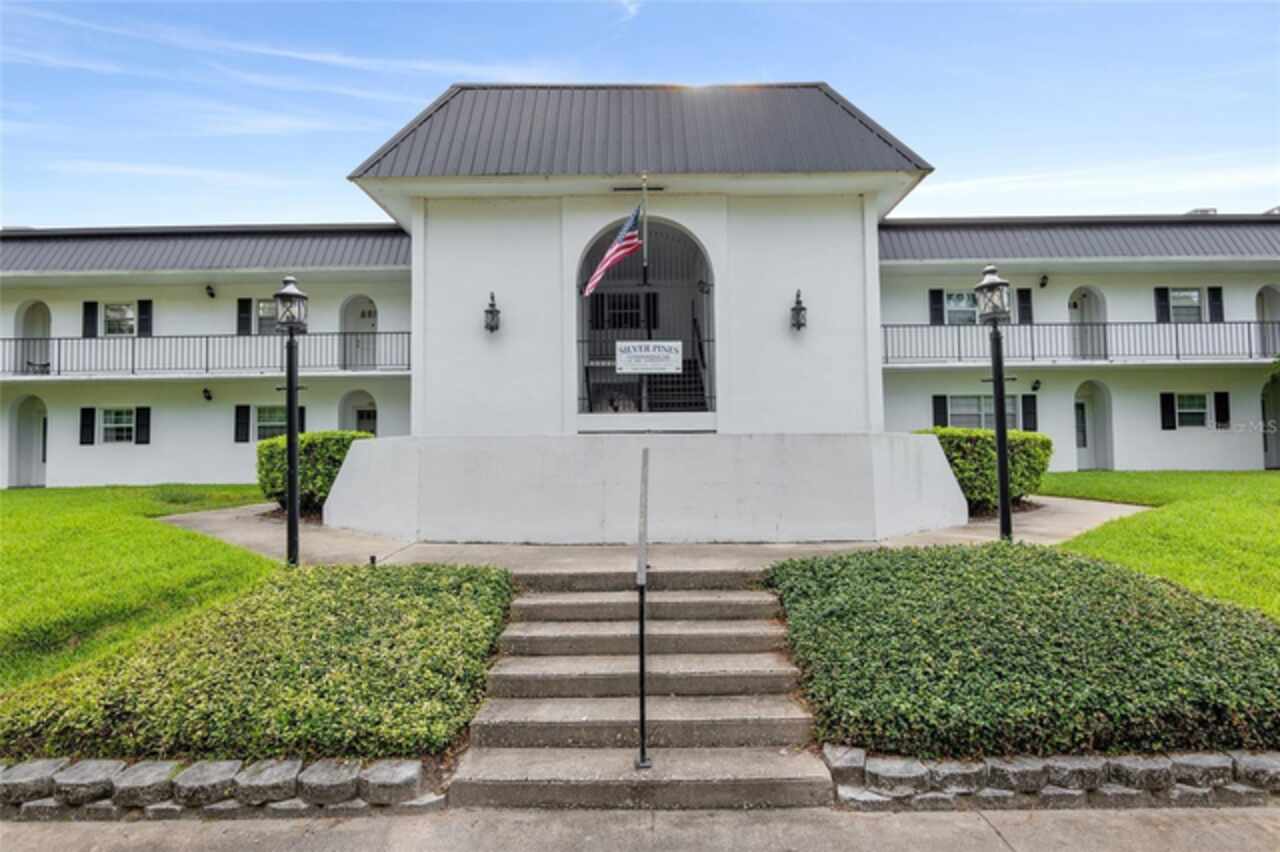 With an accepted offer, the seller is offering your choice of a $5, 000 credit toward buyer's closing costs or one year of HOA dues paid in full. GROUND FLOOR with POOL VIEW 2 Bed/2 Bath Condo in the Heart of Ocala! Located in 55+ Silver Pines 01 Condominiums. Prime location with Walmart, Publix, and Lowe’s just 3 minutes away and a short drive to a wide array of shopping, dining, entertainment, parks, and recreation. Featuring; NEW Roof 2020, open floor plan, engineered hardwood flooring, plantation shutters, new windows and gutters. Spacious great room leads to an enclosed Lanai/Florida Room, an ideal spot for relaxation or entertaining guests. Equipped kitchen features; new tile flooring, newer appliances and a pantry cabinet with ample storage space. The Master bedroom includes a private en-suite bath with a garden tub, elegant cherry wood basin vanity with granite counters, linen closet and a custom walk-in closet. The second bedroom is ample and adjacent to the guest bathroom featuring a step-in shower and large vanity. Residents enjoy exclusive access to community amenities such as; a swimming pool, sundeck, cabana, outdoor grill, outdoor showers, and laundry facilities. The HOA Fee also includes; Trash, Water, Insurance, Common Area Taxes, Painting, Maintenance and Repair (exterior building only). Assigned covered owner parking for 1 vehicle in addition to open, off-street parking for extra vehicles or guests. Across the street, a serene park invites you to unwind with scenic walking trails and a fitness station. Perfect for reconnecting with nature right outside your doorstep. Don't miss your chance! Schedule a viewing today and make this your forever home.
