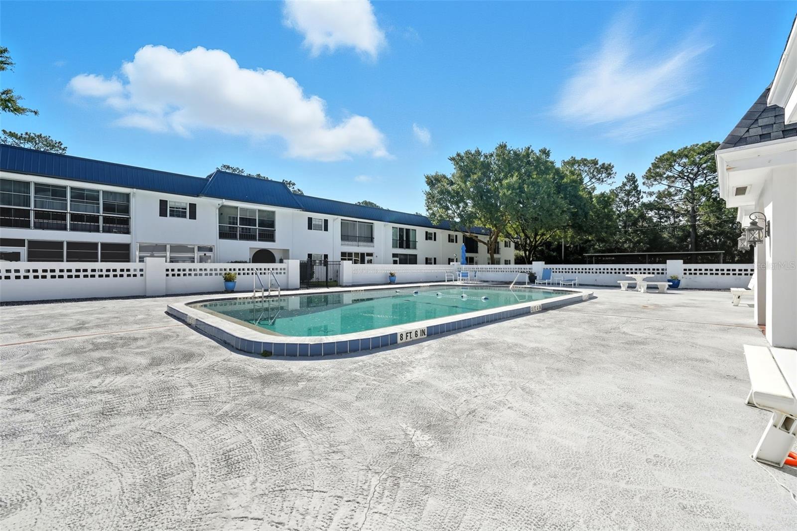 Welcome to Silver Pines Condominiums, a tranquil 55+ community in the heart of Ocala. This second-floor, two-bedroom, two-bathroom condo offers a fantastic opportunity for comfortable and convenient living, with the added benefit of elevator access. Step inside to a bright and open floor plan, with recently installed LVP (Luxury Vinyl Plank) flooring that extends throughout the main living areas. This durable and stylish flooring provides the look of hardwood with the benefits of being scratch-resistant, waterproof, and easy to maintain. The spacious great room provides an ideal setting for relaxation and entertaining. The well-appointed kitchen features white cabinetry and appliances, and the seller is offering a $2, 500 appliance allowance to update the space to your taste. The primary bedroom is a peaceful retreat, complete with a private en-suite bathroom. The second bedroom is also generously sized and is adjacent to the second full bathroom, which includes a shower/tub combo with safety grab bars. Residents of Silver Pines enjoy a host of community amenities, including a refreshing swimming pool, cabana with outdoor grill area, and on-site laundry facilities. The HOA fee covers water, trash, exterior building maintenance, and insurance, providing a hassle-free lifestyle. This condo comes with assigned covered parking for one vehicle, with additional off-street parking available for guests. Located just minutes from shopping, dining, and entertainment, this condo offers both serenity and convenience. Don't miss your chance to make this exceptional property your new home! Schedule your private showing today.