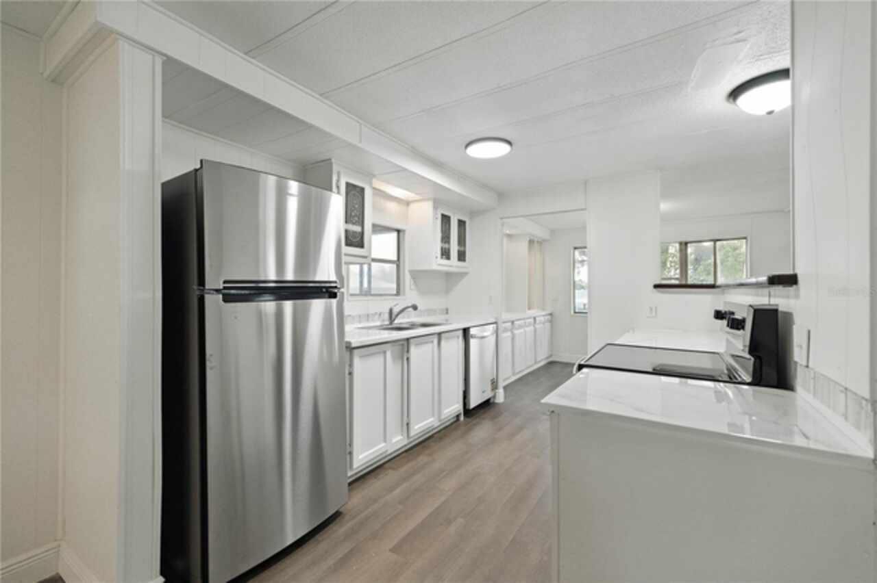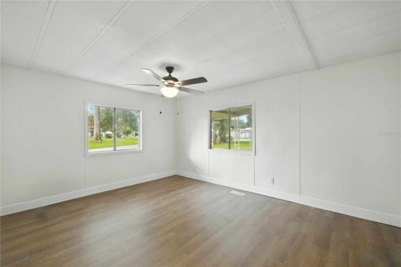 OWNER FINANCING AVAILABLE! NO LOT RENT! Welcome to this fully renovated 2 bedroom 2 bathroom home on a 0.27 acre corner lot in the no age restricted Ocala East Villas Community. Very affordable HOA of just $150 a month, which includes water, sewer, trash, yard waste and recycling pick-up, use of clubhouse, pool, fitness center, and library. As you walk in you will notice an expansive living room and a nice open concept kitchen with brand new luxury vinyl flooring throughout. All new stainless steel appliances along with updated countertops makes this a chefs dream. Brand new interior and exterior paint as well as fully updated bathrooms. Enjoy your morning cup of coffee with the attached Florida room. A 2025 Central AC Unit gives a peace of mind to the new homeowner for years to come. Call today to make it yours!