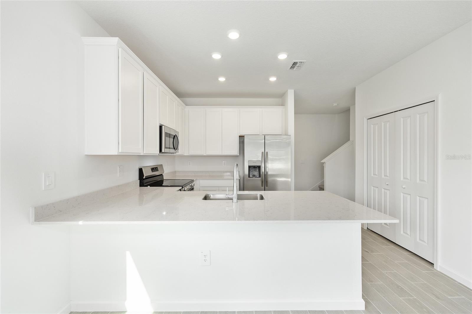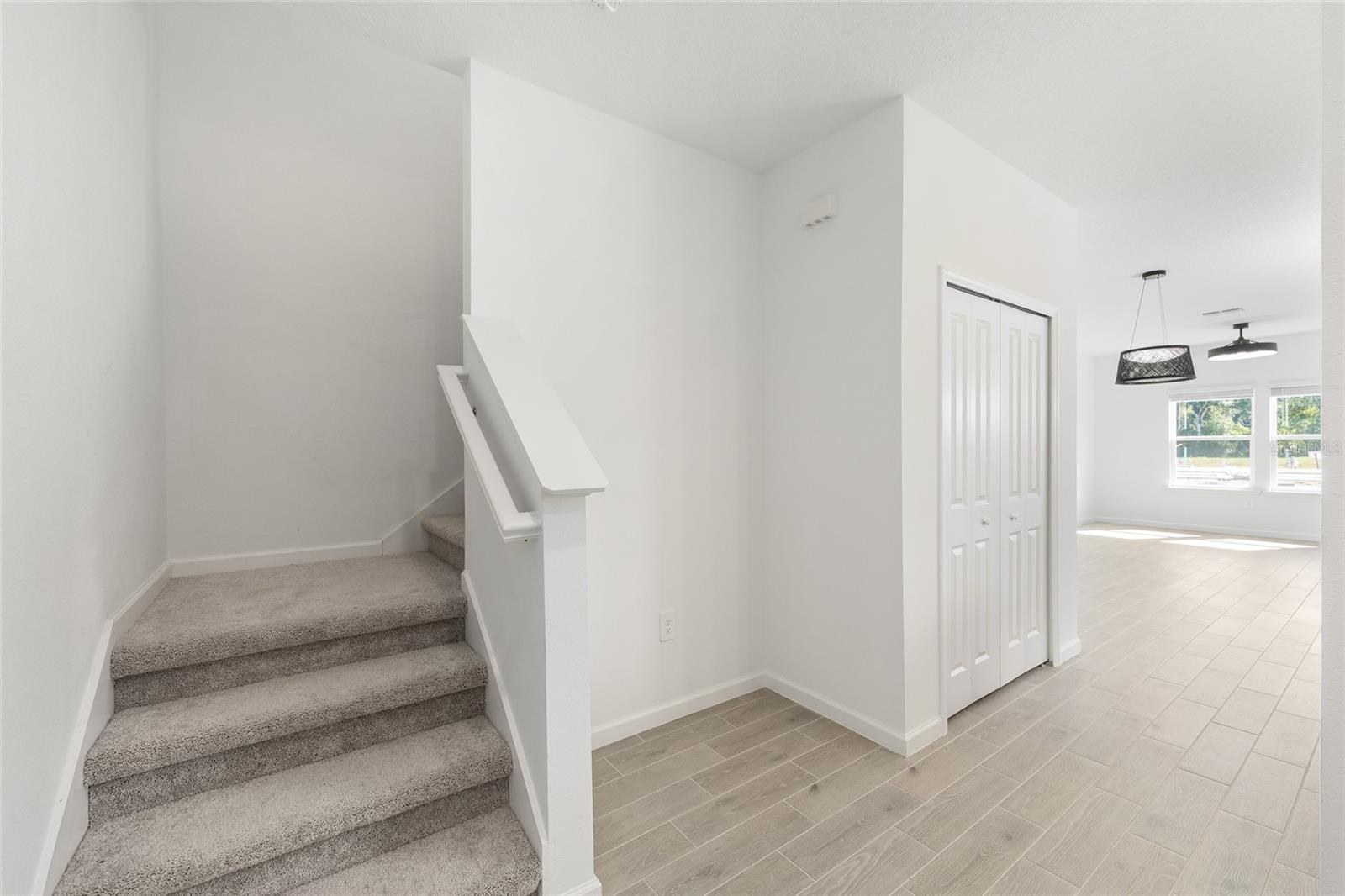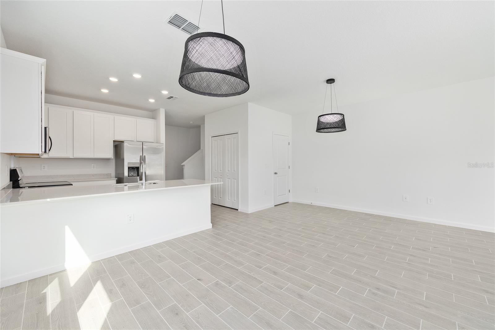 Nestled in the newly developed Oak Hammock Preserve neighborhood of SE Ocala, this lovely brand new Townhome built in 2025, offers 3 bedrooms and 2.5 bathrooms with 1, 782+/- square feet of living space. Enter ground level to a soft coastal chic aesthetic, 9’ ceilings and seamless white oak porcelain tile flooring. A guest powder bath is conveniently located off of the foyer, garage access offers a secondary entry and follows through to an open living concept. The kitchen features 42” shaker cabinetry, pantry, granite countertops, a suite of stainless appliances and breakfast bar. The great room is spacious for both dining and living. The ground level is complete with a covered screened lanai for outdoor living and access to green space. The second level is carpeted and features three bedrooms, flex space in the loft and a laundry room. The primary bedroom features a large walk-in closet and windowed en-suite with dual sinks, quartz countertop and a tiled, walk-in shower with glass enclosure. The secondary bedrooms each feature reach-in closets and share a Jack-and-Jill bathroom with a tiled shower/tub and single sink with quartz countertop. Additionally there are window blinds and ceiling fans throughout. Oak Hammock Preserve is conveniently located off of Maricamp Road, close to grocery, parks, medical providers and a short distance to downtown Ocala’s most popular dining & nightlife, super-hip restaurants, bars, cafes, shops, Ocala’s Downtown Square and Farmers Market. Whether you’re in the mood for a trendy spot, a cozy coffee or just unwinding and listening to music, you’ll find plenty of options. Sorry No Pets