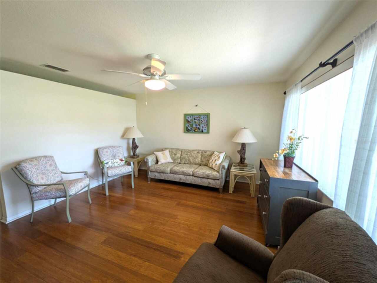 PRICE REDUCTION!! New roof 2025, updated kitchen , LVP or tile throughout this adorable 2/2/2 home. Kitchen has slide out drawers in bottom cabinets for easy access. Large yard with mature landscaping on quiet street in 55+ community close to everything, shopping, medical and restaurants. Outside painted in 2024. Florida room off of dining room opens to patio. Internet, cable and trash are included. Community has large pool and too many activities to list that are included. This is a well kept home you can move right in. Priced to move so don't miss this opportunity to live the Florida lifestyle.