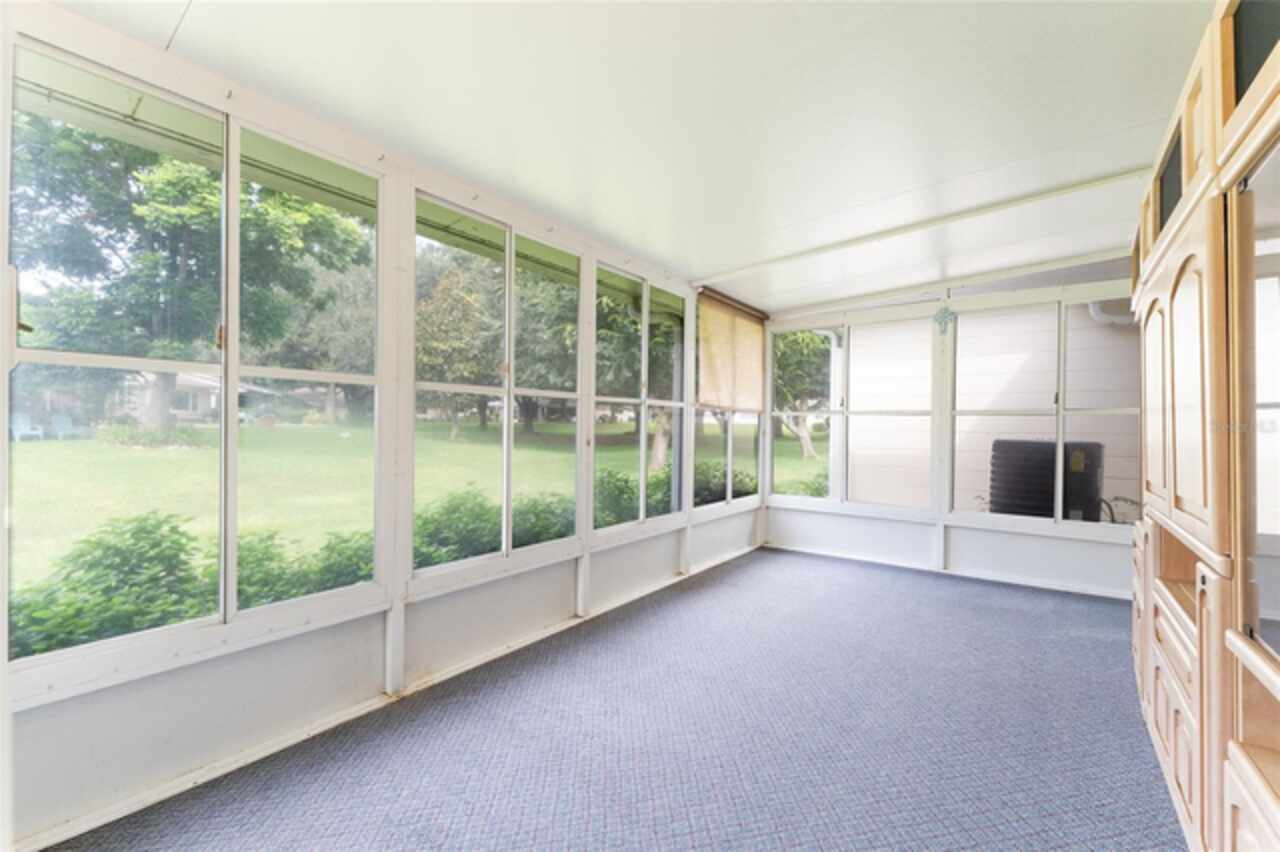 Welcome to this charming Grand Lafayette home in On Top of the World's Crescent Ridge neighborhood. Featuring 2 bedrooms, 2 baths, and a 1-car garage, this home is designed for comfort and convenience. Step inside to a spacious combination living and dining area, with a kitchen ready for all your culinary creations. At the rear of the home, you'll find a versatile bonus room; perfect for a home office, crafting space, or a cozy spot to unwind with your favorite shows. The enclosed lanai is the ideal place to enjoy your morning coffee, with neighbors behind set at a comfortable distance compared to many other villas, providing added privacy. Another perk, your front view faces the Recreation Center, putting activities and amenities right across the street. Conveniently located near the Arbors, Recreation Center, and Veteran's Park, this home is also nestled in Ocala's premier active adult community, offering an abundance of amenities plus golf cart access to two shopping centers. Roof credit available with accepted offer.